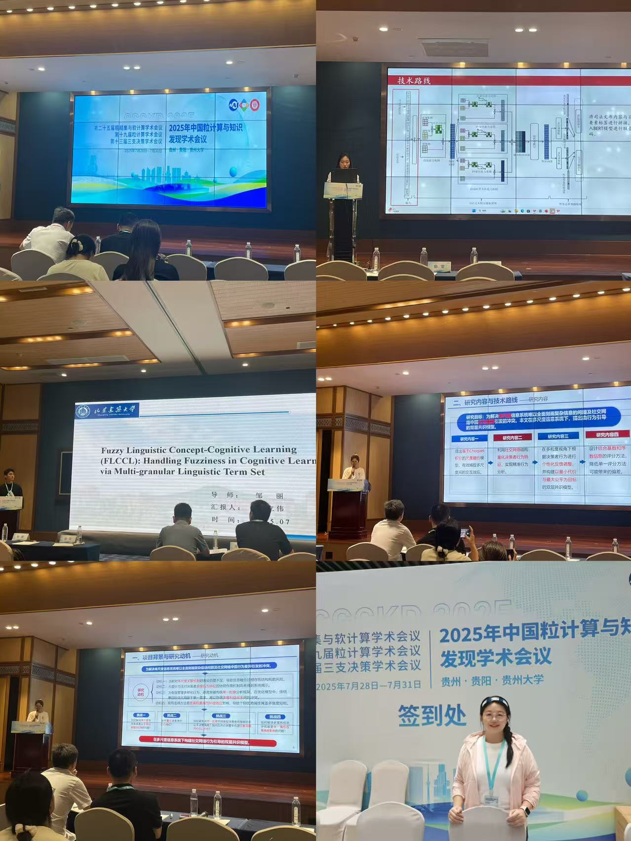 7月28日至31日,由中国人工智能学会主办,中国人工智能学会粒计算与知识发现专委会协办,国际粗糙集学会支持,贵州大学承办的2025年中国粒计算与知识发现学术会议(CGCKD2025)在贵阳召开。本次学术会议围绕“粗糙集与软计算”“粒计算理论及其应用”“三支决策模型与分析”“知识发现与数据挖掘”“人工智能创新应用”进行深入学术交流与知识分享。伟德官网软件工程系彭莉莎教师参与本次会议。
