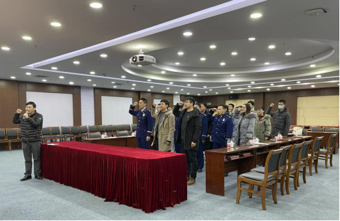 最后,与会全体党员庄严列队,一起重温入党誓词。在喜迎建党100周年之际,全体党员面向党旗,举起右拳,通过庄严的仪式,提醒广大党员同志牢记初心和使命,铭记党员身份,在学习、工作、生活中发挥先锋模范带头,为构建和谐社会和平安校园贡献自己的力量。