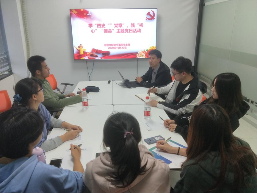 10月29日下午,伟德官网学生第四党支部于9301B举行“学‘四史’《中国共产党章程》,践‘初心使命’”主题党日活动。