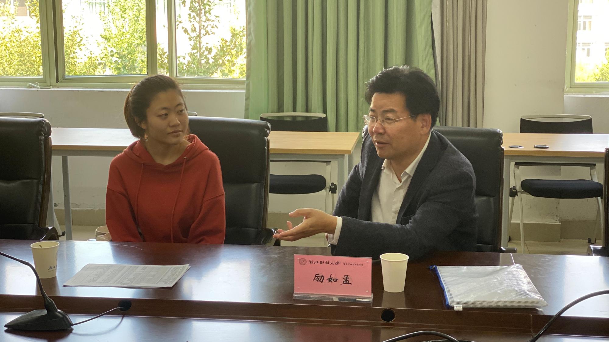24日中午,励如孟副校长一行于学院9404会议室,座谈看望联系寝室,与寝室郝朝廷、李虹萱、江玉玺三名同学进行了愉快的交谈。励校长详细询问了各位同学的学习情况和生活情况。详细询问了三位同学的近况,就三位同学的考研学校、专业等准备情况进行了建议,为三位同学做了较为明确的规划。
