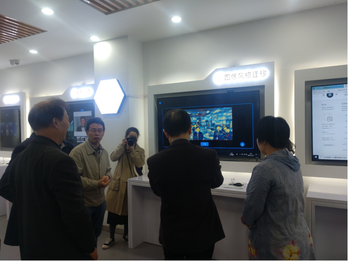 伟德官网计算机系系主任刘亚楠副教授向各位专家介绍人工智能体验园的组成情况,在机器感知区域,介绍了语音识别与合成、人脸融合与图像风格迁移等计算机视觉与自然语言处理的相关技术。