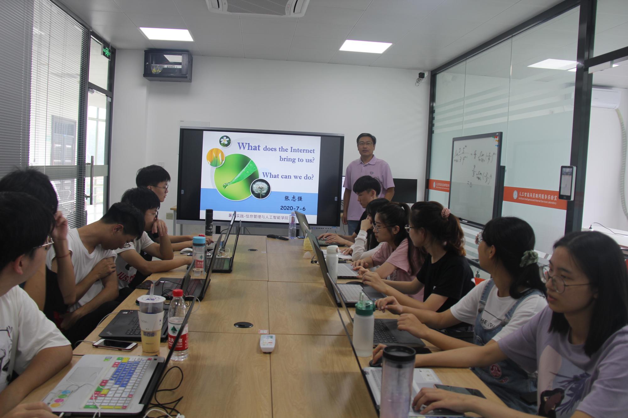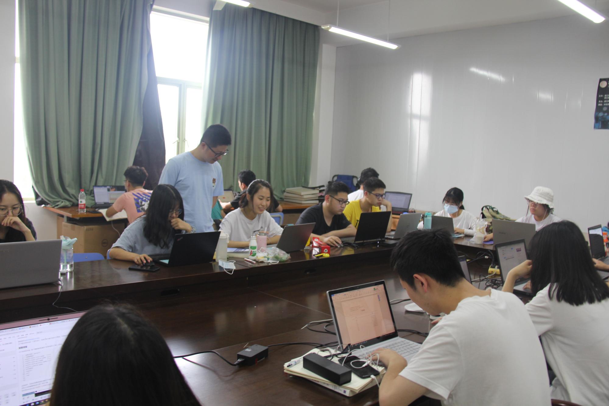 在暑期短学期的两周时间,17、18两个年级共计520名学生全部留校,在各个实验室中,由项目指导老师进行集中辅导与自主动手实践,完成各类项目的实践任务。这些项目中,有学术训练与实践能力提升类的项目,如信息管理中的数据分析与智能决策、互联网搜索技术、数据可视化、企业管理信息化实训沙盘模拟(ERP)、基于CANSLIM模型的股票金融数据量化分析等;也有学科竞赛培训类的项目,如建模分析与决策优化、程序设计竞赛实践、软件服务外包项目实践、电子设计竞赛培训等;还有面向求职的技术技能培训类项目,如H5前端开发技术培训、python机器学习实践、TensorFlow应用实战、互联网企业运营实训等。