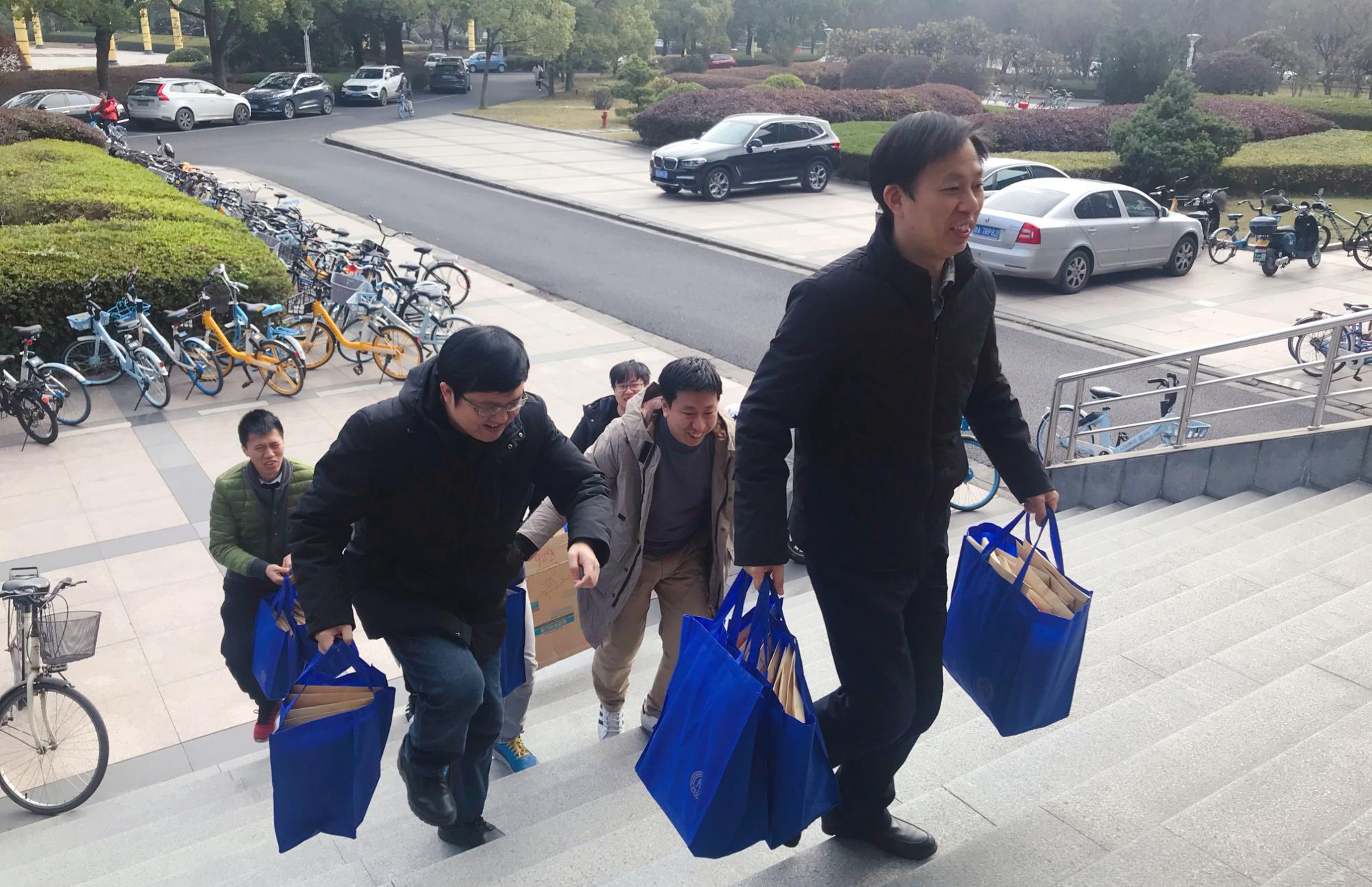 “真正的力量源泉,来自内心深处”、“考神附体,考研加油”......一封封来自导师和辅导员的考研寄语明信片,和暖心的助考大礼包一起被送到了伟德官网大四考研学生的手中。在这个局部飘雪的杭城冬日,B413考研教室的氛围却显得格外温暖。12月17日,为缓解学生备考压力,伟德官网院长张帅、院党委书记徐奇伟、副院长陈远高、党委副书记田聪以及学院辅导员一行前往考研教室,为处于冲刺阶段的大四学生送去考研慰问与鼓励。