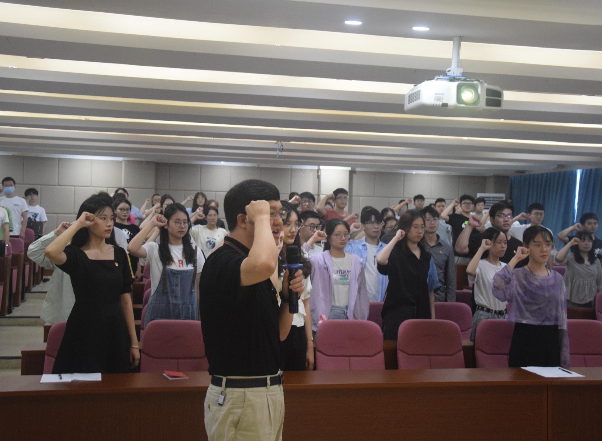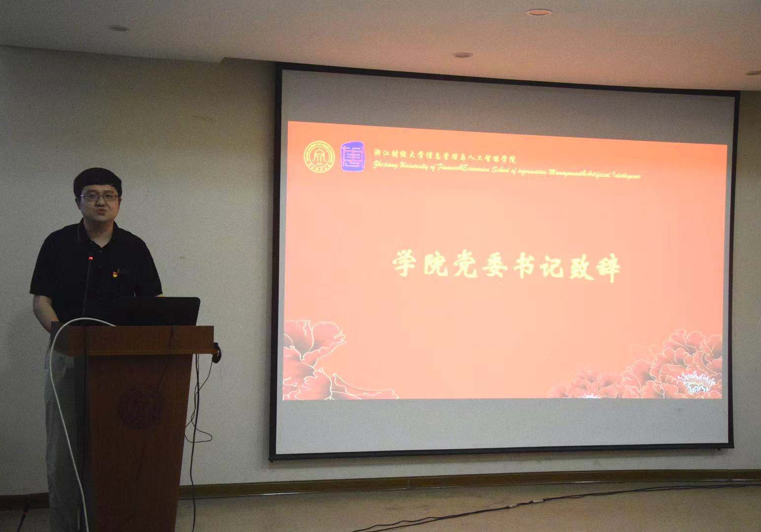 6月10日下午,BV伟德官方网站信息管理与人工智能学院庆祝建党100周年入党宣誓仪式暨党史学习教育专题党课活动于9号楼302报告厅顺利举行。伟德官网院长张帅、院党委书记徐奇伟,院党委副书记田聪,专职组织员兼研究生党支部书记冯李哲,以及全院学生党员参加了此次活动。本次宣誓仪式及党课由院党委副书记田聪主持。