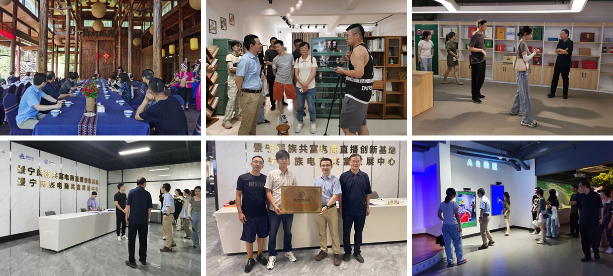 之后,服务团先后考察了景宁县大均乡的“中国畲乡之窗”和鹤溪镇东弄村的畲家田园综合体,在畲族阿妹的带领下感受了独特的少数民族风情,并详细了解了畲乡“农旅+电商+商贸”的运营模式,正是在这种创新的模式之下,乡、村集体经济得到了蓬勃的发展,同时,田园综合体的运营也直接带动了周边农家乐、民宿等产业的发展,创造了景区工作人员、演职人员、讲解员等一批新的就业岗位,解决了村民的就业问题,为村民收入的增收提供了新保障。为进一步了解景宁县整体电商产业的发展,下午服务团还参观了景宁数字文创电子商务产业园,与园区的负责人、入驻企业负责人进行了深入的交流。服务团还来到景宁“600”综合服务中心,参观景宁特色农产品展销中心、畲乡助农直播间和畲乡文创产品展示中心,通过景宁民族电商共富发展中心工作人员的介绍,了解景宁电子商务发展情况,并举行了“BV伟德官方网站中国畲乡直播电商实践基地”的授牌仪式,与景宁民族电商共富发展中心签订了战略合作协议。