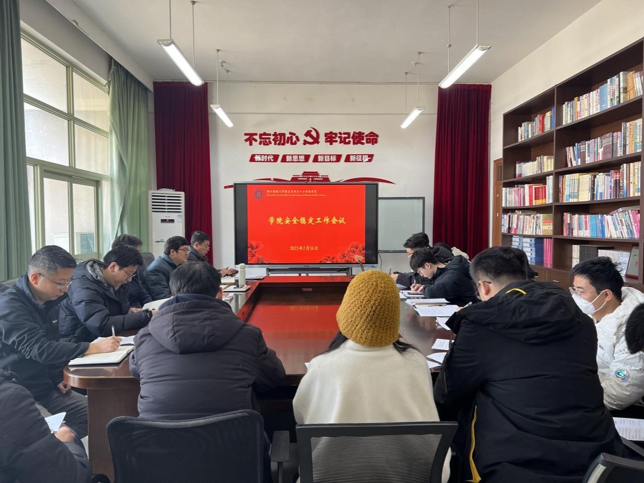 2月16日,伟德官网召开校园安全稳定工作会议,会议由学院党委书记徐奇伟主持,院长张帅、党委副书记田聪、学院全体行政管理教师出席会议。
