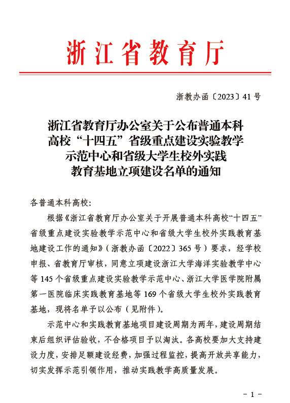 近日,浙江省教育厅公布了普通本科高校“十四五”省级重点建设实验教学示范中心立项建设名单,伟德官网“工程实践与智能创新实验教学中心”名列其中。该项目获批是学院实验中心建设新的起点,中心将以此为契机,进一步加强实验室建设与管理,以培养学生创新精神和实践能力为核心,不断探索教学改革,强化教学团队建设,完善实验教学体系,提高实验教学信息化水平,推动优质实验教学资源共建共享,为我校高质量的本科教育和人才培养做出更大的努力。