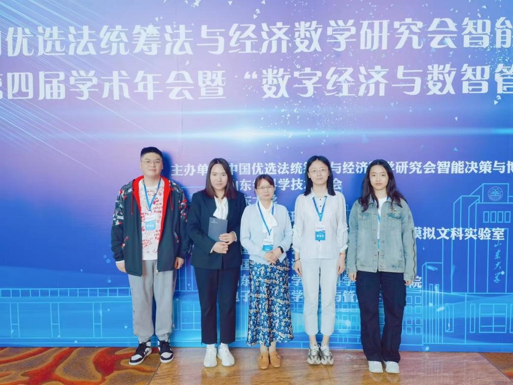 2023年5月5~7日,中国优选法统筹法与经济数学研究会智能决策与博弈分会第四届学术年会暨“数字经济与数智管理决策”论坛在山东济南举行。会议由中国优选法统筹法与经济数学研究会智能决策与博弈分会、山东省科学技术协会和山东大学主办,山东大学管理学院和山东省高等学校数智管理与决策模拟文科实验室承办。伟德官网信管系彭娟娟副教授和周欢老师带领三位研究生参加了此次会议。