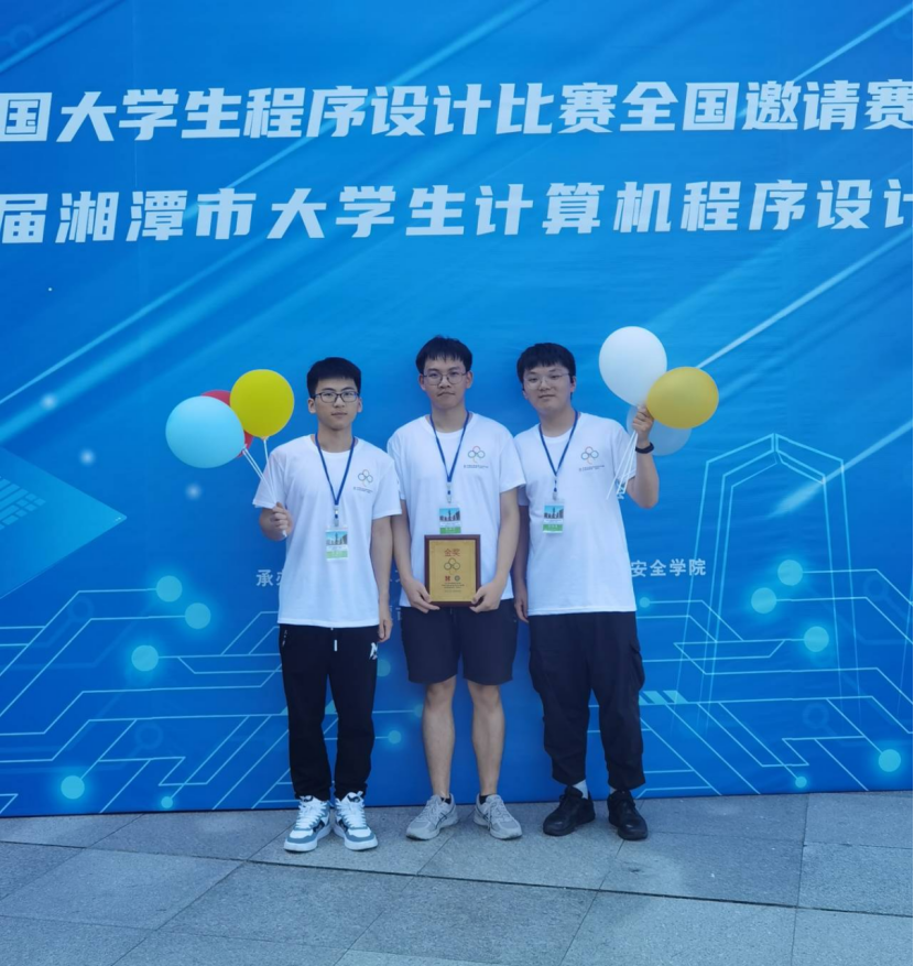 5月28日,2023年中国大学生程序设计竞赛全国邀请赛(湖南)在潭大学圆满闭幕,伟德官网三支代表队在全国100所高校共268支正式队伍中脱颖而出,由20人工智能张维康、朱新宇、张宏剑组成的“这次打完真戒网瘾了”获得一枚金牌,21软件工程陈启亮、冯裕钵、徐海天组成的“寒星孤月”获得一枚银牌, 21人工智能朱腾、陈超、王乔治组成的“鹅队”获得优胜奖。