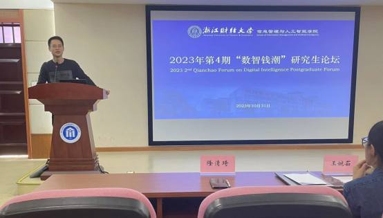 2023年10月31日,伟德官网在9号楼302会议室成功举办了“数智钱潮”研究生论坛。本次论坛由郭彧、胡书逸和郭相良三位伟德官网管理科学与工程研究生进行主题分享,邀请了王婉茹老师和程小英老师作为此次论坛的点评专家。学院分管研究生工作副院长隆清琦教授进行了开幕致辞,研究生秘书杨天亦以及全体在校研究生参加了论坛。