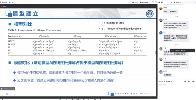 11月1日晚,大连海事大学航运经济与管理学院李延通副教授应邀为伟德官网研究生做学术报告,李教授分享的主题是“Noval formulation and logic-based Benders decomposition for integrated parallel machine scheduling and location problem”。学院张树柱老师与研究生团队参加了讲座,线上参与人数大约七十余人。讲座由信管系张树柱老师主持。