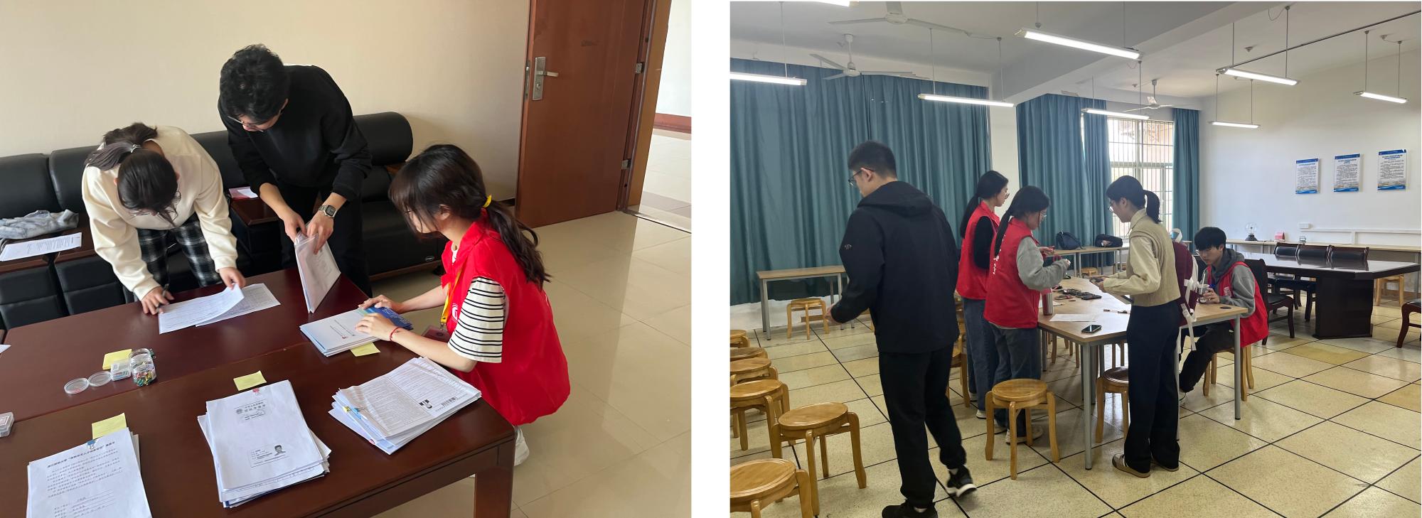 在复试开始前组织志愿者和复试秘书等提前培训,要求每一位工作人员熟悉所有考试流程,确保复试进程有序、流畅进行。学院招生复试志愿小组、秘书组、机动组等协同配合,为复试工作顺利进行保驾护航。