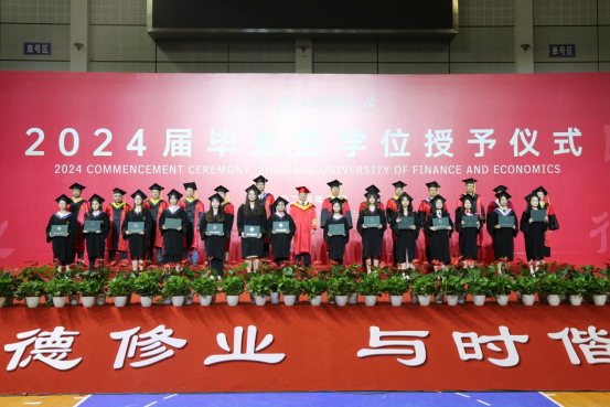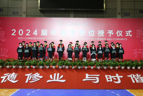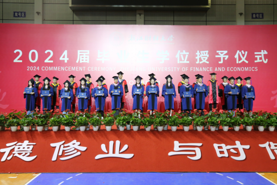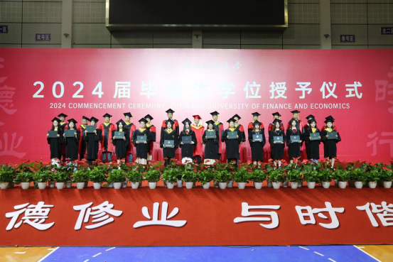 随后,毕业生依次上台接受老师颁发的学位证书,导师们为毕业生逐一拨穗正冠,授予学位,合影留念,衷心祝贺他们顺利毕业,祝愿他们在未来前程锦绣,为母校争光。毕业生们也纷纷表达了对母校老师们的感恩与祝福,表示将不负母校的辛勤培育和殷切期望,践行“进德修业,与时偕行”的校训,积极投身国家建设,努力成为栋梁之才。