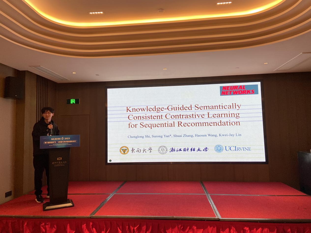来自东南大学的博士生王浩森和史成龙分别作了主题为“基于节点聚类的异构图重写攻击”“基于知识引导的语义一致序列推荐对比学习”的口头报告。