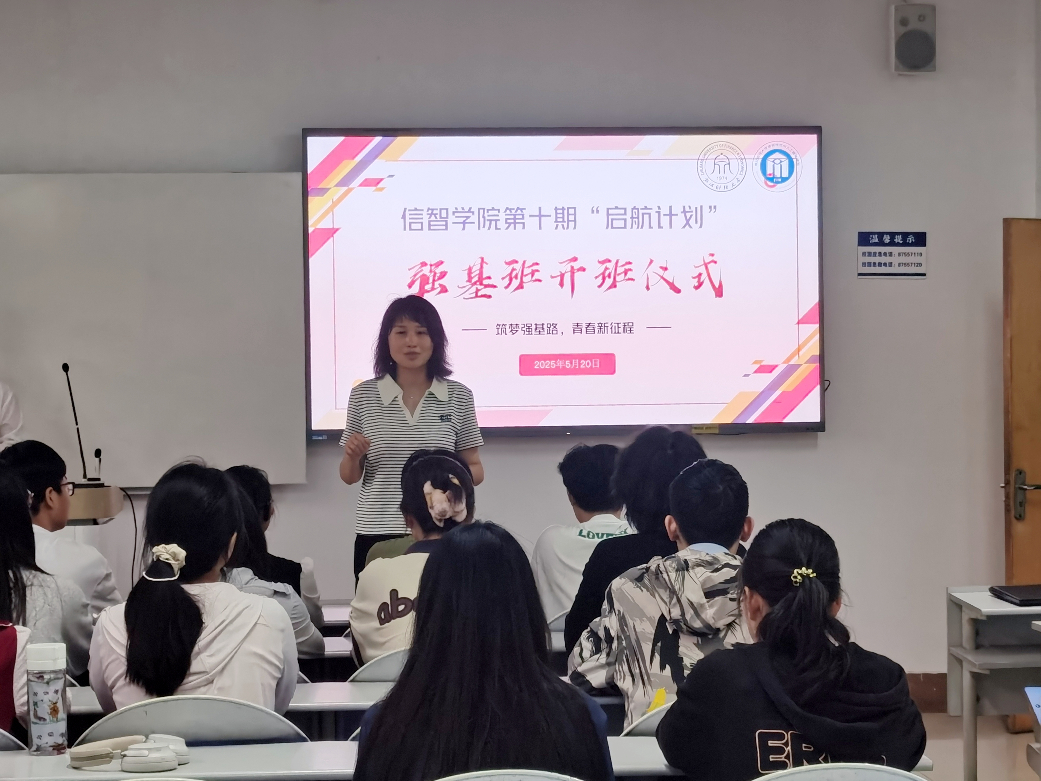 为积极推动和加强学风建设,创建“牵手携行共成长”的学习环境,为学生的学业进步和知识积累提供坚实的支持和帮助,伟德官网于5月20日下午在D210教室举行了第十期“启航计划”强基班开班仪式。学院副书记吴轶韵、院长助理陈明晶、学院组织员徐军军、助困辅导员史光花、学生助教及补习班全体成员参加了仪式。