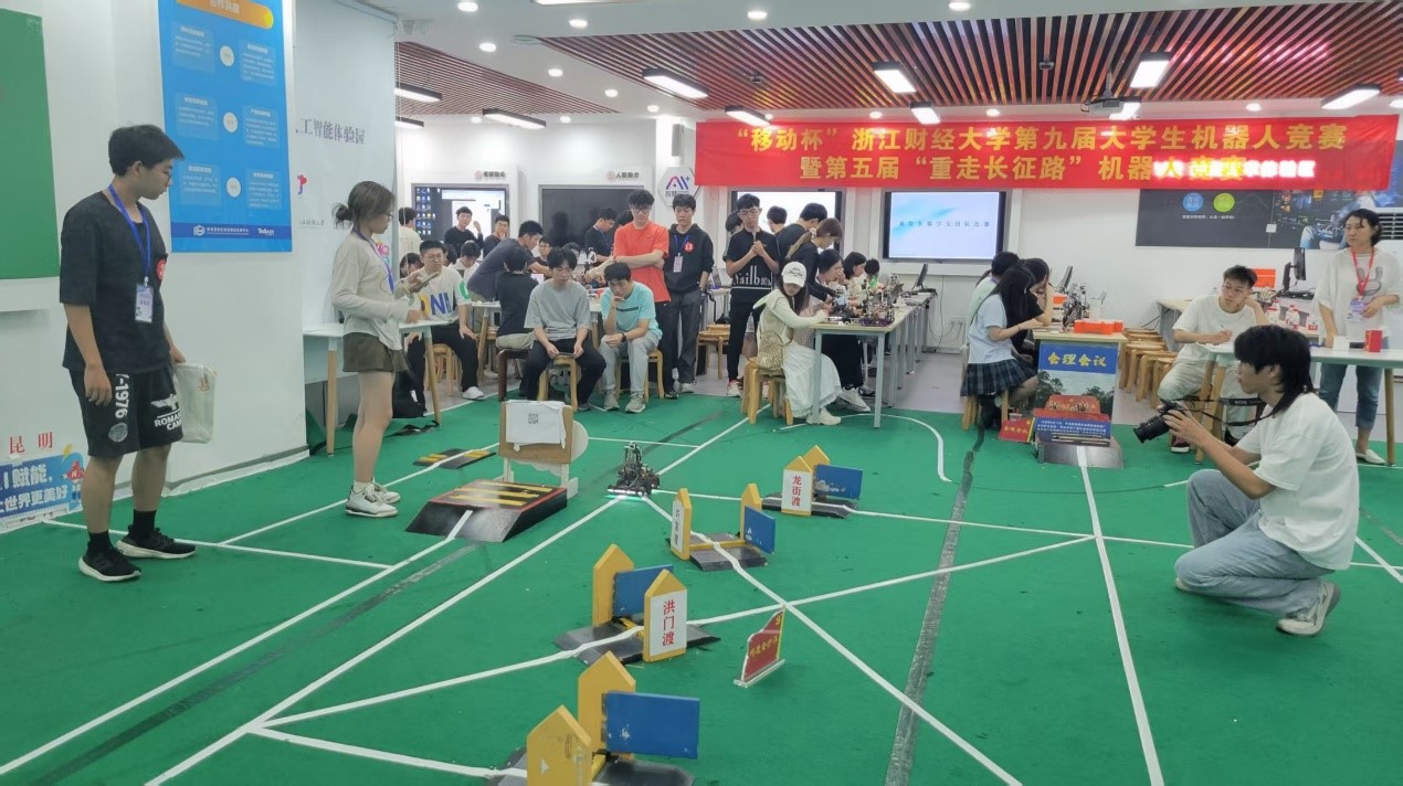 签约仪式结束后,“移动杯”BV伟德官方网站第九届大学生机器人暨第五届“重走长征路”机器人竞赛正式拉开帷幕。本届竞赛以“金沙智渡开新路,泸定铁臂擎红旗”为主题,要求参赛团队通过编程控制机器人模拟完成长征途中的标志性任务。经过激烈角逐,16支决赛队伍最终决出一等奖3组、二等奖5组、三等奖8组。赛事不仅考验了学生的技术能力,更通过红色主题设计深化了思政教育与专业实践的融合。
