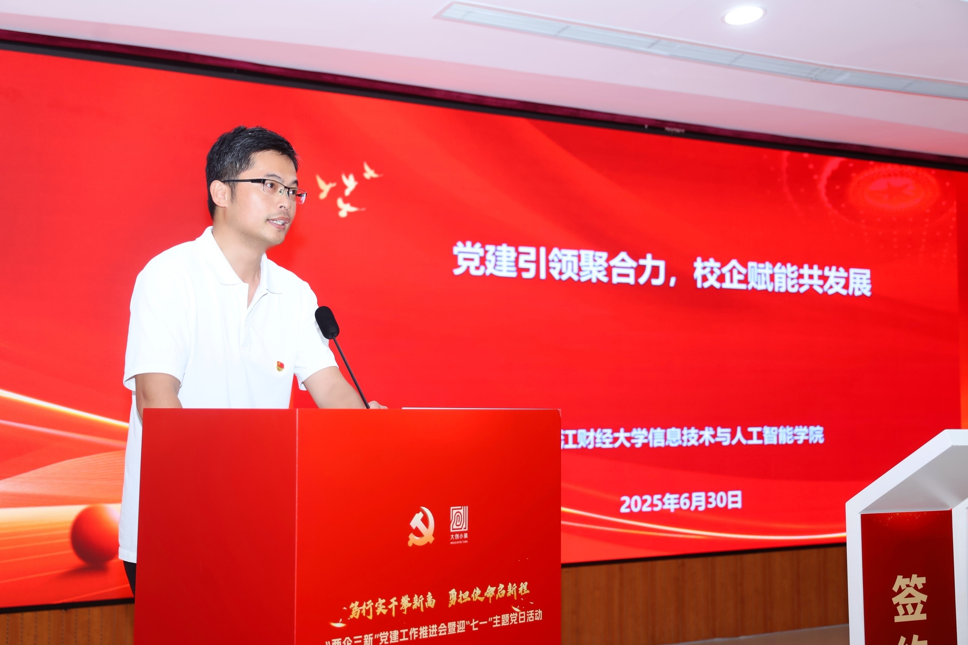 活动中,学院与钱塘区科技型企业签署了人工智能产业党建共建协议,旨在通过校企党建深度融合,进一步推动产学研协同创新与人才培养。