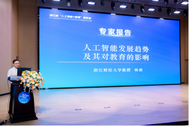 7月2日上午,伟德官网副院长林剑教授应邀在浙江省“人工智能+教育”推进会上做了题为“人工智能发展趋势及其对教育的影响”的专题报告。