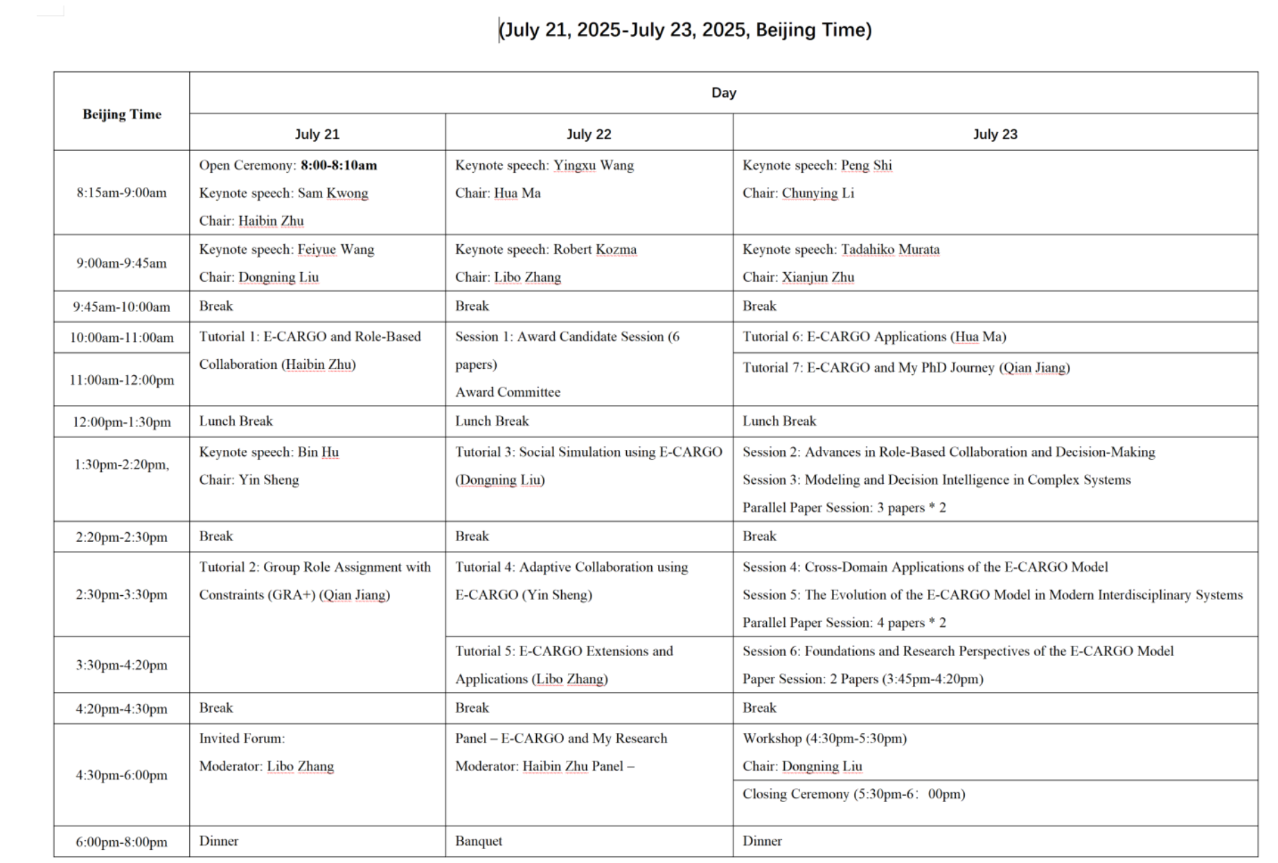7月22日,大会举办了题为“E-CARGO and My Research(E-CARGO与我的科研)”的座谈会。由朱海滨教授组织座谈会,刘冬宁教授、滕少华教授、马华教授、盛寅副教授、张里博副教授5位专家和蒋骞博士参加座谈交流。专家们从科研经历出发,探讨了E-CARGO模型的发展及其应用,与会师生积极参与讨论。E-CARGO及其应用国际暑期学校已于2023、2024年成功举办两届。此次国际暑期学校为期3天,围绕“E-CARGO及其应用”主题设置了7场学习教程系统学习了E-CARGO模型的理论基础和及其实际应用。