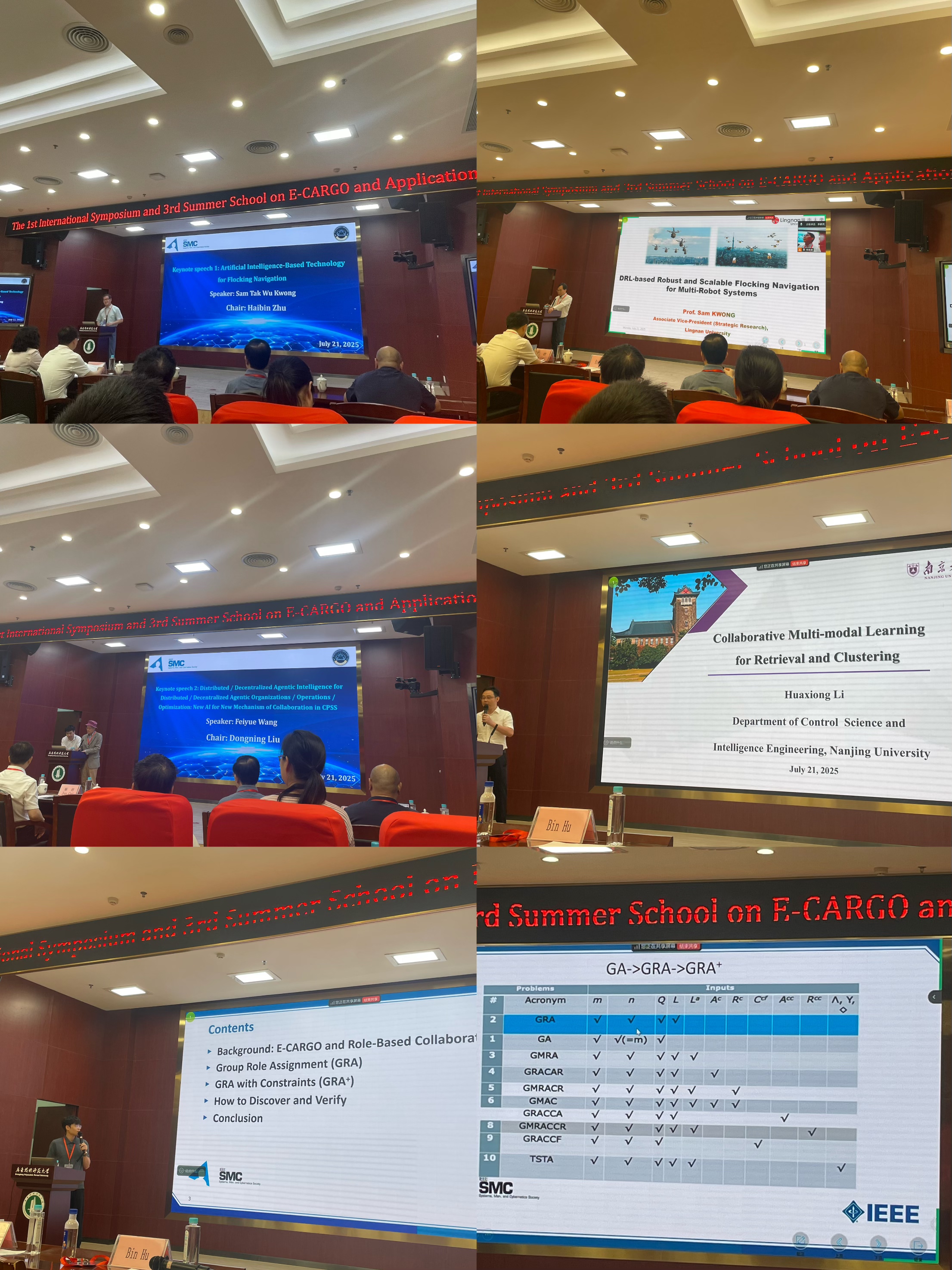7月21日上午,大会正式开幕,学校校长戴青云,党委常委、副校长蔡君,大会主席加拿大尼普森大学朱海滨教授(E-Cargo 首创学者)、广东工业大学计算机学院副院长刘冬宁教授,学校相关单位负责人出席开幕式。本次会议汇聚了众多国际知名专家学者,多位IEEE Fellow:IEEE SMC Society学会前主席 Sam Kwong,《IEEE Transactions on Cybernetics》主编 Peng Shi等8位知名学者做主题演讲,主题报告内容涵盖人工智能、低空经济、机器人、智慧教育、智慧医疗、数字孪生、智能数学、自主智能、类脑智能、多智能体系统、信息物理社会系统等多个前沿主题,为参会者带来了一场场精彩的学术盛宴。7月21日下午,大会组织了青年科学家特邀论坛,邀请到了天津理工大学计算机学院副院长程徐教授,南京大学李华雄教授,西南交通大学刘盾教授,福建理工大学计算机学院副院长孟振宇教授分别作专题汇报。