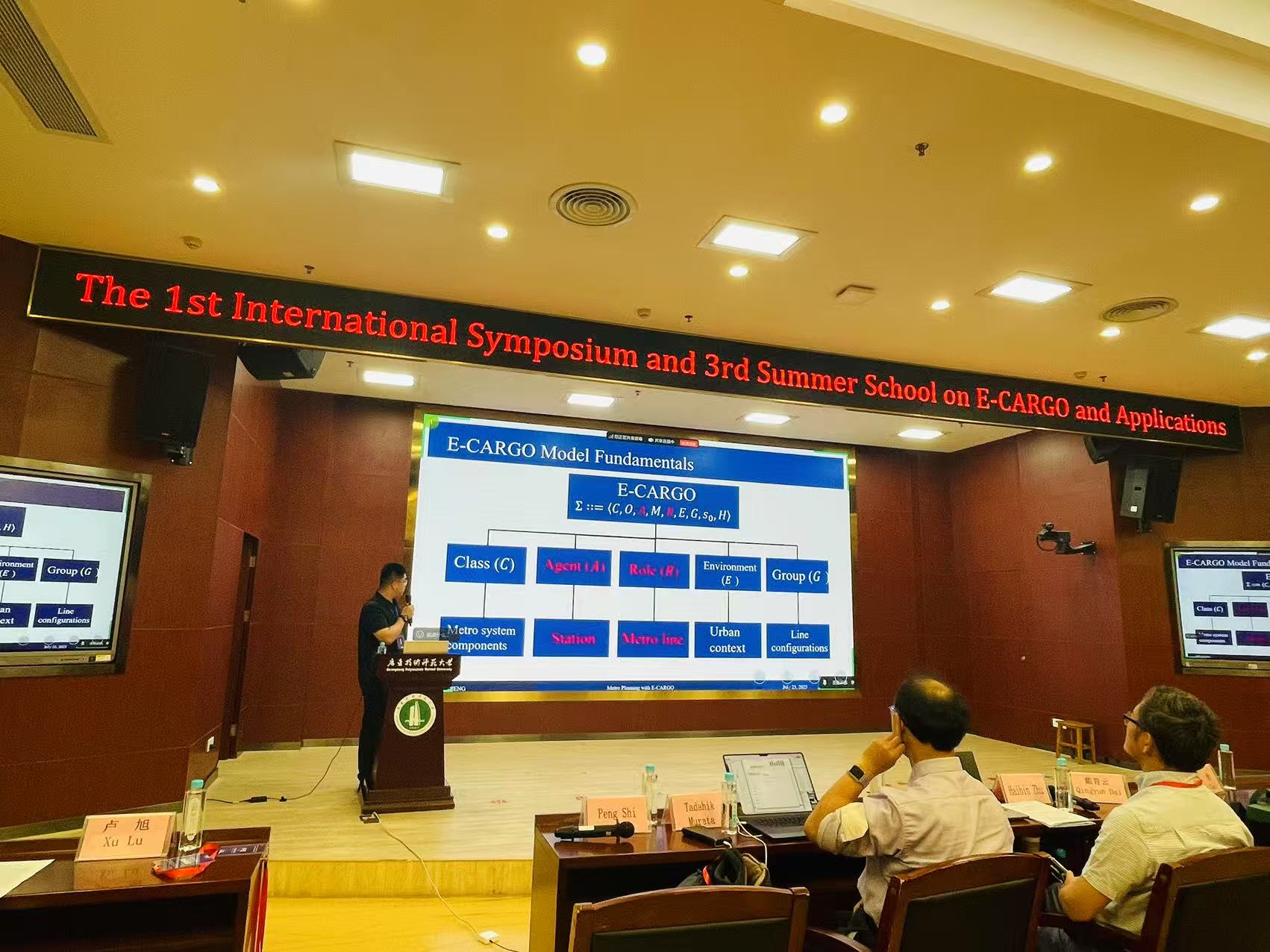 朱东垚同学的论文《New Metro Line Planning Using the E-CARGO Model》被收录至分会场 4 “E-CARGO 模型的跨领域应用” 环节。7 月 23 日 15:15-15:30,他在第一教学楼 208 学术报告厅进行了现场报告,详细介绍了基于 E-CARGO 模型进行新地铁线路规划的研究成果,展示了该模型在城市交通规划领域的应用潜力,其研究内容引发了在场专家学者的关注与讨论。