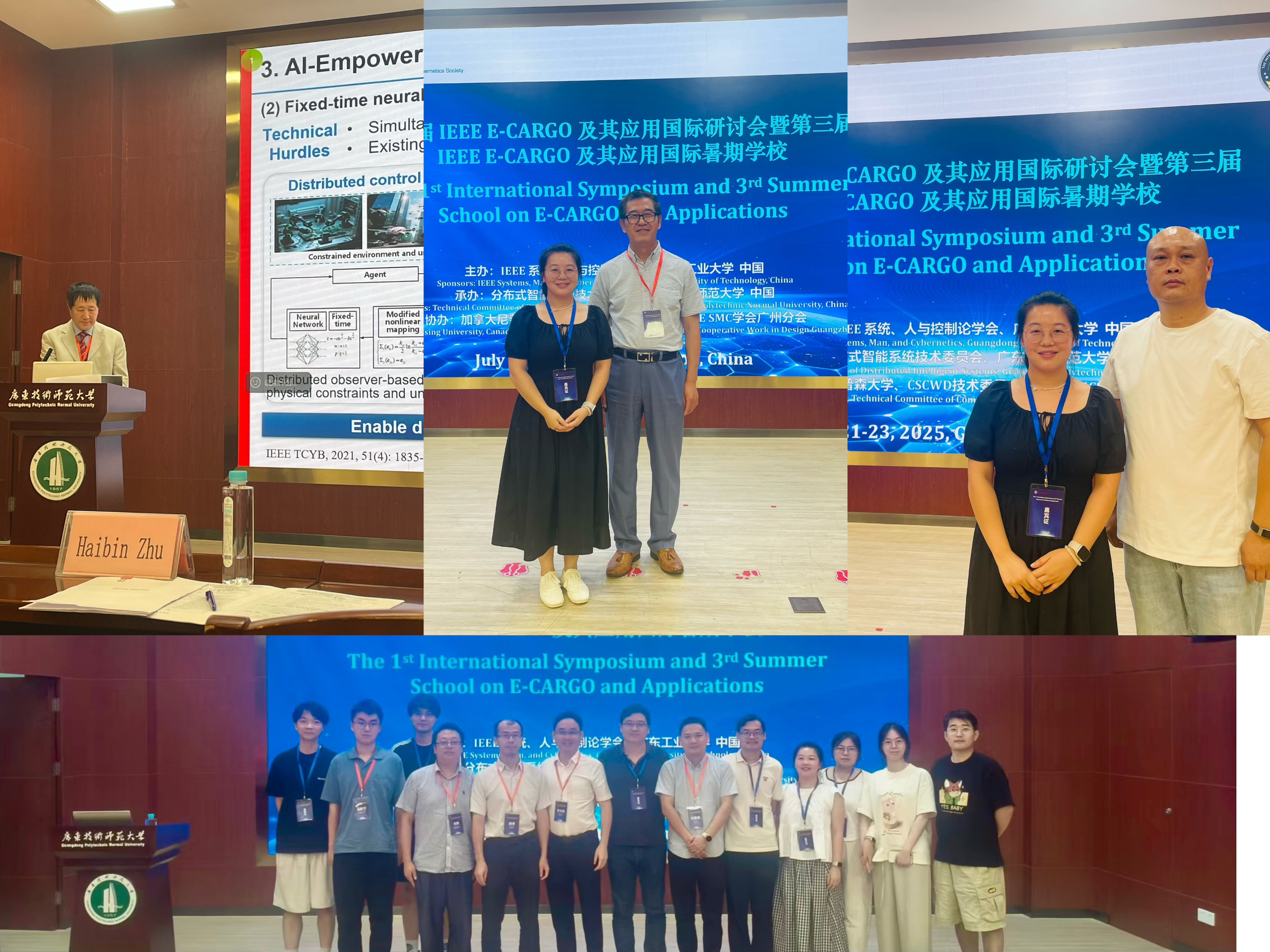 7 月 21 日至 23 日,第一届 IEEE E-CARGO 及其应用国际研讨会暨第三届 IEEE E-CARGO 及其应用国际暑期学校在广州成功举办。本次会议由IEEE Systems, Man, and Cybernetics Society(IEEE SMC)和广东工业大学主办,分布式智能系统技术委员会和广东技术师范大学承办,加拿大Nipissing 大学、CSCWD 技术委员会、IEEE SMC 学会广州分会协办。此次会议旨在拓展E-CARGO模型和RBC(基于角色的协作)方法学的应用,促进其在SMC领域中复杂系统问题的有效解决。来自中国、加拿大、美国、澳大利亚、日本等国内外20多所高校的专家学者和师生共计170余人参加了会议。伟德官网软件工程系彭莉莎老师及其指导的23级本科生朱东垚同学参会,朱东垚同学在该会上发表了学术论文,并做了“基于E-CARGO的地铁线路规划”的学术报告。