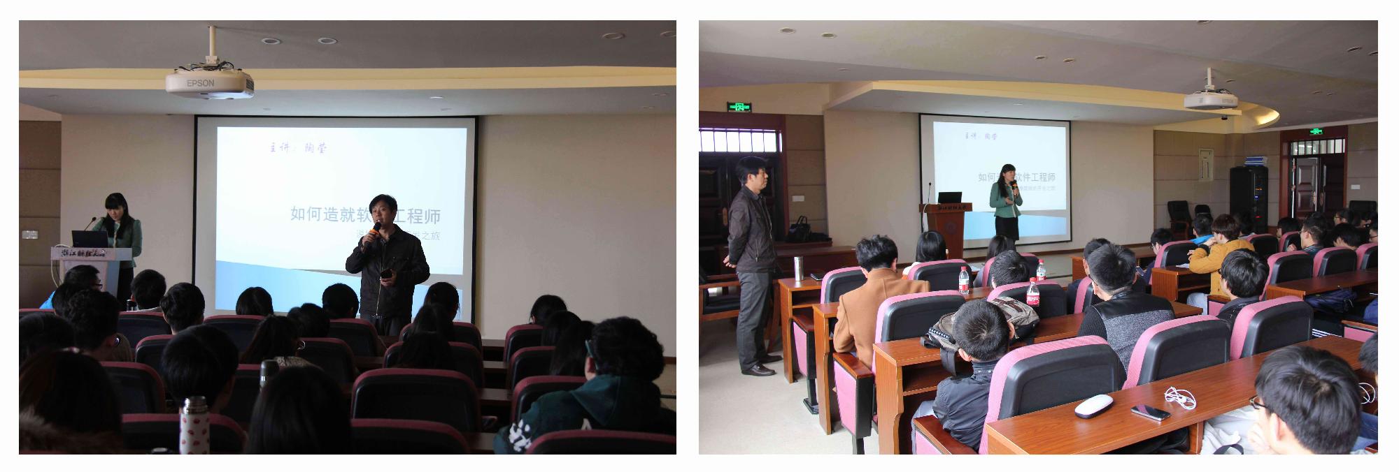 为加强伟德官网与校外实践基地的合作,深化实践教学改革,激发学生专业兴趣,15年3月23日下午杭州归谷实训基地技术经理陶莹老师应邀在信息学院302教室为同学们带来了一场神奇的软件开发之旅。副院长张帅教授主持并全程观摩了此次授课。