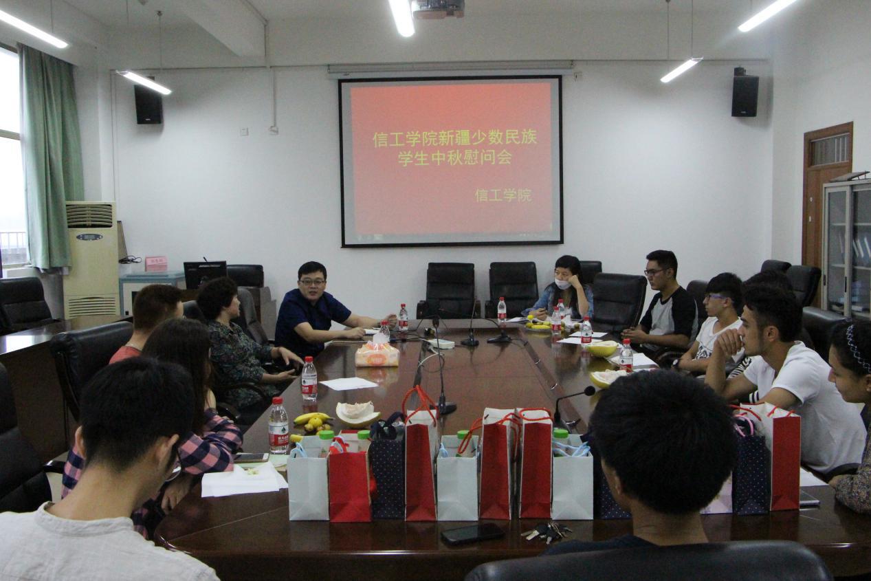 9月14日下午,信工学院开展了新疆少数民族同学中秋节慰问会暨古尔邦节活动。学院党委书记冯睿老师、党委副书记陆颋浩老师、辅导员陈小芳老师、冯李哲老师、吕挺老师出席了本次活动,并向少数民族同学致以了节日的祝贺。