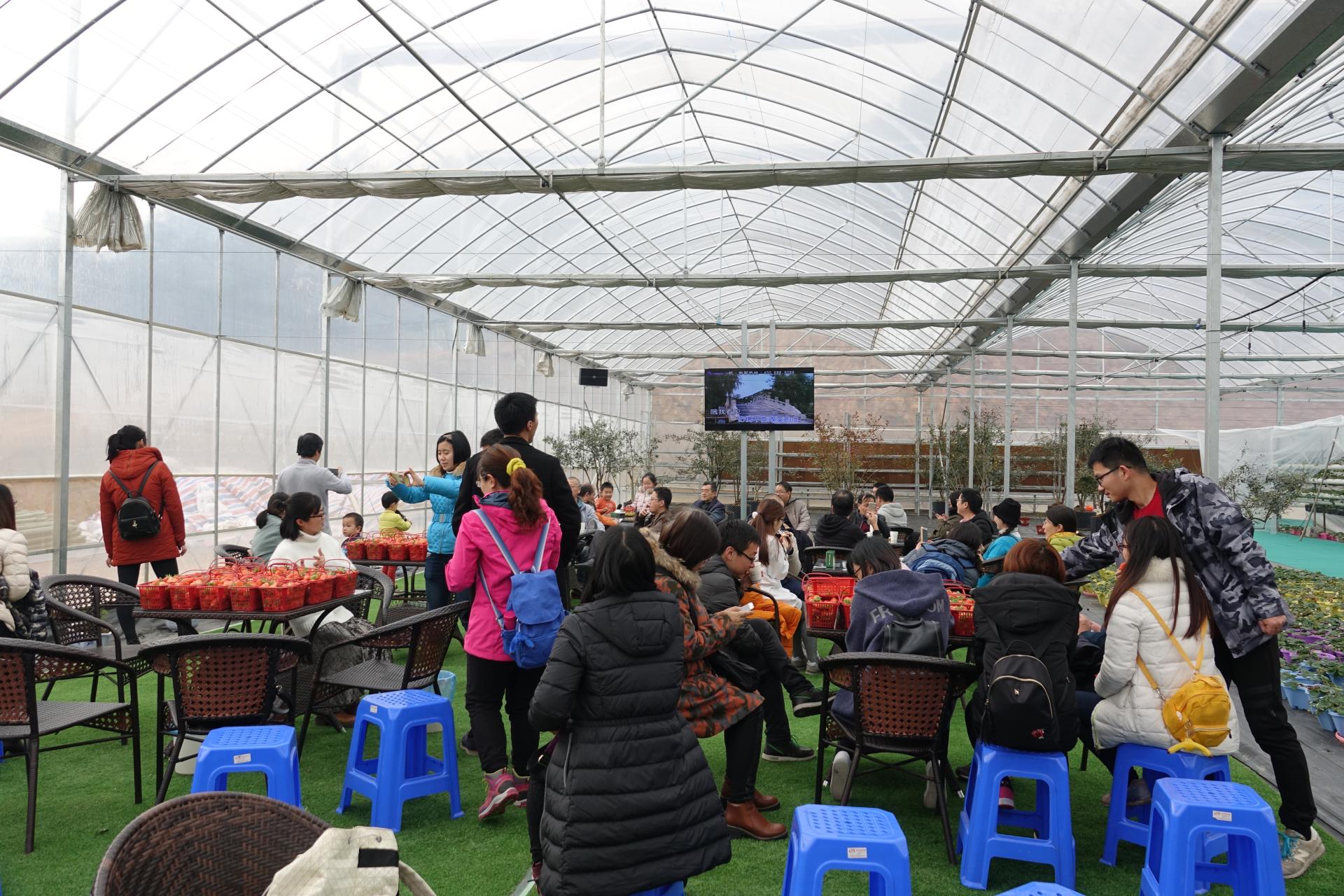 下午老师们进入新型农业果园采摘草莓,一进大棚映入眼帘的是白花片片、红果点点,一颗颗娇嫩欲滴、惹人怜爱的草莓。寻宝行动就此展开,与以往草莓基地不同的是,高科技的无土栽培技术,先进暖棚管理,把人从寒冬瞬间拉进了暖意融融的春季。