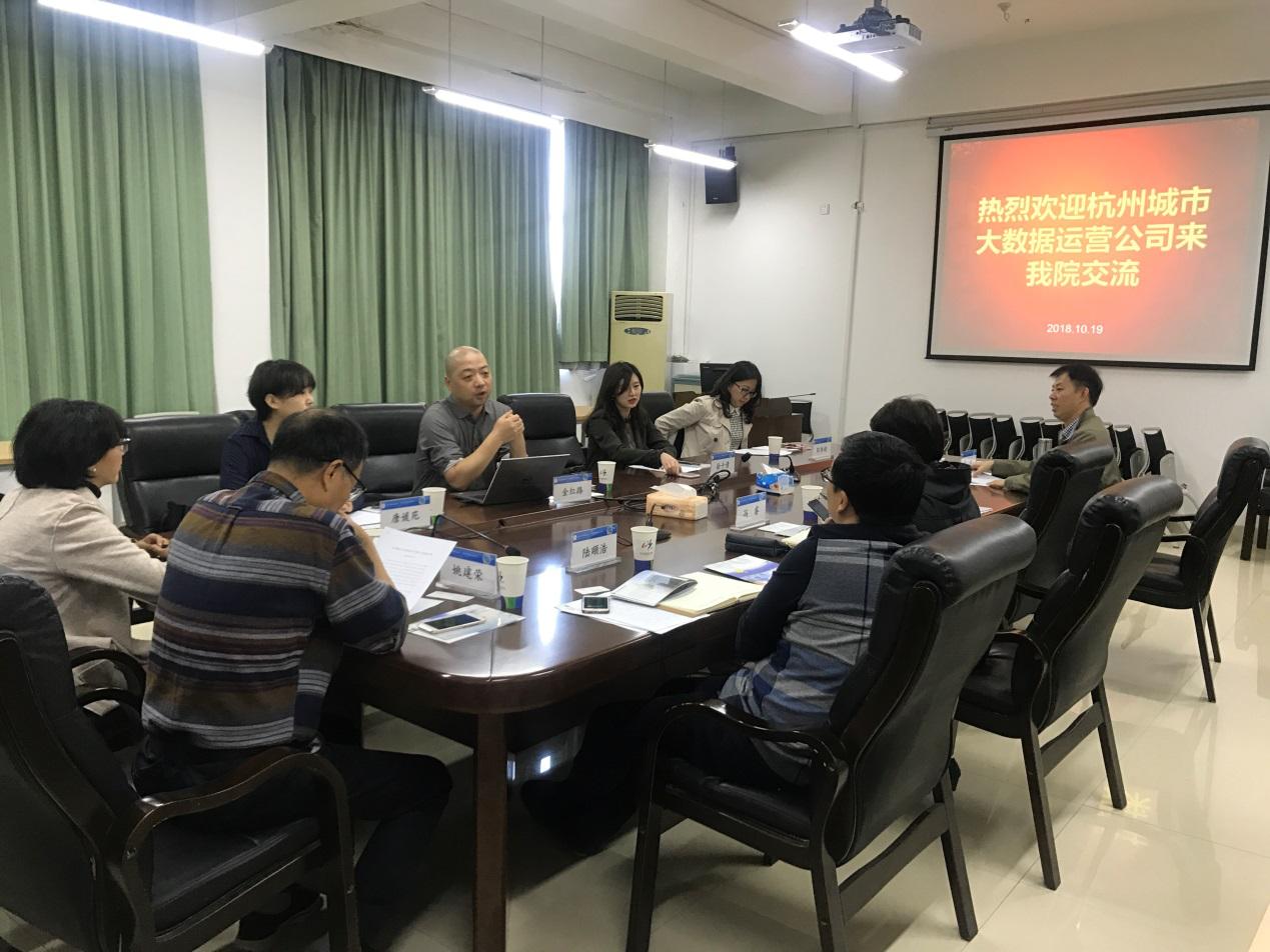 2018年10月19日上午,杭州城市大数据运营公司金红路副总裁、徐千倩副总裁等一行四人来伟德官网洽谈战略合作框架协议,伟德官网党委书记冯睿、副院长张帅、党委副书记陆廷浩、姚建荣教授以及各相关系主任出席了座谈会。