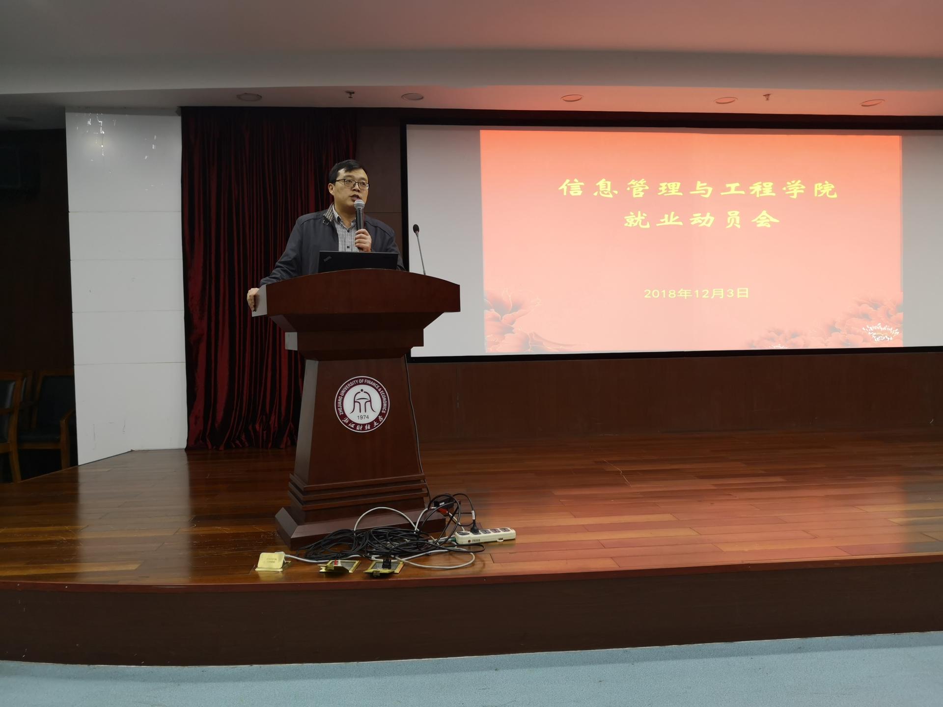2018年12月3日下午,学院2019届毕业生就业动员大会在学术中心第四报告厅召开。学院党委副书记陆颋浩老师、辅导员冯李哲老师、毛立晨老师出席了本次会议,会议由毛立晨老师主持。