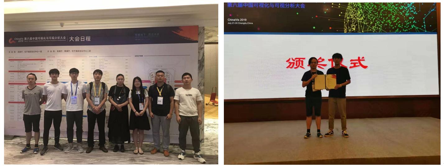 在BV伟德官方网站信工学院学科建设经费及人工智能与大数据可视分析创新研究团队经费的资助下,在伟德官网教师周志光、刘玉华和陈伟锋的共同指导下,伟德官网学生共有2篇学术论文被大会录用并口头宣讲。其中,2017级管理统计学方向研究生石晨同学和2016级软件工程专业本科生胡淼鑫同学合作的论文“Visual Selection of Standard Wells for Large Scale Logging Data via Discrete Choice Model”被大会录用并推荐国际SCI期刊《Journal of Visualization》发表;2018级管理统计学方向研究生张欣隆和2016级软件工程专业本科生郭智勇同学合作的论文“Uncertainty Visualization in Stratigraphic Correlation based on Multi-source Data Fusion”被大会录用并推荐国际SCI期刊《Journal of Visualization》发表。此外,伟德官网2018级软件工程专业本科生杨振东、陈远翔等5位同学参加ChinaVis2019数据可视分析挑战赛,获得优秀奖。与会同学与专家学者们进行深入的交流和讨论,收获了学术研究的信心和进一步规划自己前途的可贵经历。