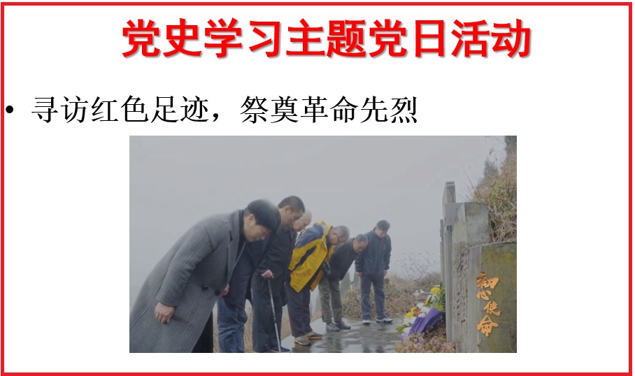 518日,伟德官网教工第一党支部在9506召开了“礼赞百年心向党”党史学习主题党日活动。会议由支部书记朱凌主持,支部党员老师参会学习。