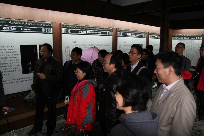 游完江郎山后,又驱车前往江郎山麓的江南毛氏发祥地,毛泽东祖居地——清漾毛氏文化村。该村自江南毛氏第八代先祖清漾公毛元琼迁到这里已有1500年的历史,历史上曾出了8个尚书,83个进士,积淀了“历史悠久、人才辈出、耕读传家、贵而不富”的历史文化底蕴。在品味毛氏家族文化的同时,老师们也在追思逝去的伟人。