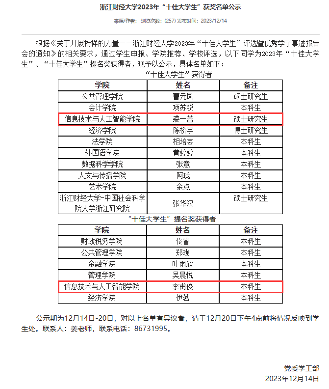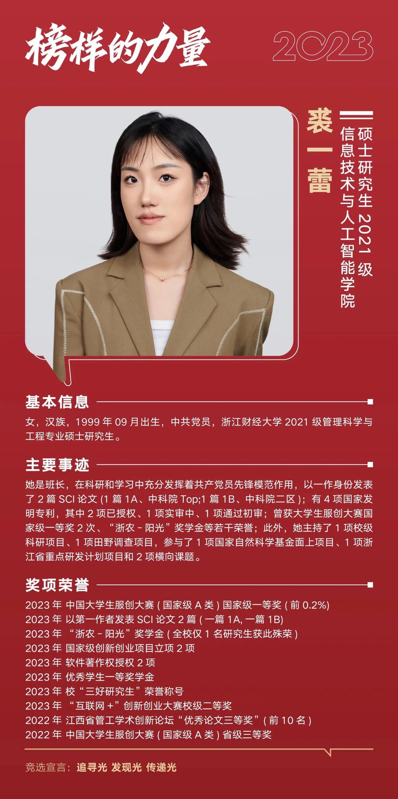 近日,BV伟德官方网站公布2023年“十佳大学生”评选结果,伟德官网裘一蕾获评2023年“十佳大学生”,李甫俊获评2023年“十佳大学生”提名奖。
