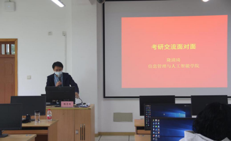 会上,隆清琦详细介绍了目前的全国考研形势、学院考研情况、考研方向选择以及考研策略。希望同学们能够做好考研复习计划,及时关注目标院校的考研分数和招生计划,注重劳逸结合,加强身体锻炼,对自己定位清晰准确。陈伟锋、宋海裕、陈明晶和田聪分别围绕目标院校及专业选择、制定复习计划、查找资料、调整心态等方面谈了自己的亲身体验和感受。咨询会干货满满,赢得了同学们的阵阵掌声,让同学们更加明确考研的方向,进一步增强了考研的信心和决心。