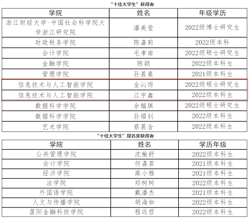12月16日,2024年BV伟德官方网站“十佳大学生”评选暨优秀学子事迹报告会在学术第一报告厅圆满落下帷幕,伟德官网学子经过组织推荐和现场展示评选,凭借德智体美劳各方面的优秀表现以及在学术研究、学科竞赛、社会实践、志愿公益等领域的突出成果,经过激烈的角逐,在全校众多优秀学生中脱颖而出。2022级管理科学与工程专业硕士研究生金沁雨、2022级人工智能专业本科生江宇鑫同时获评校“十佳大学生”,展现了信智学子昂扬向上的精神风貌、踏实进取的优良学风,发挥了积极的榜样作用。