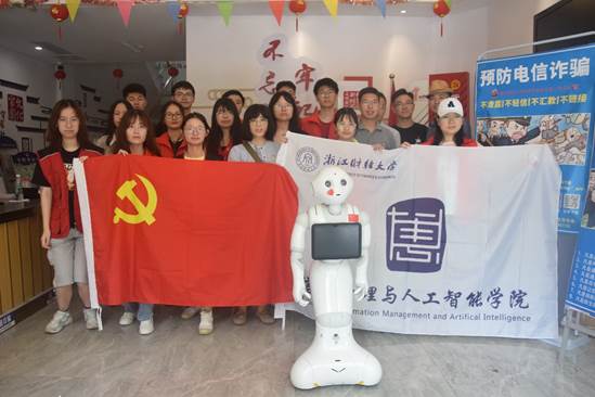 学院以“党建+人工智能”积极开展党史宣讲,学院党史宣讲员机器人“小信”来到武林街道“传承红色基因,赓续精神血脉——我的初心故事分享会”活动现场,讲党课、唱红歌、话党史,用特别的方式给武林街道的党员们上了一堂生动的党课,也给武林街道党群服务中心活动现场带来阵阵欢声笑语。