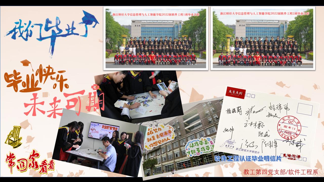 6月23日,是2022届毕业生参加毕业典礼的日子。教工第四党支部和软件工程系给本届毕业生准备了一份特殊的礼物——一张由软件工程系全体教师签名的财大校园明信片。