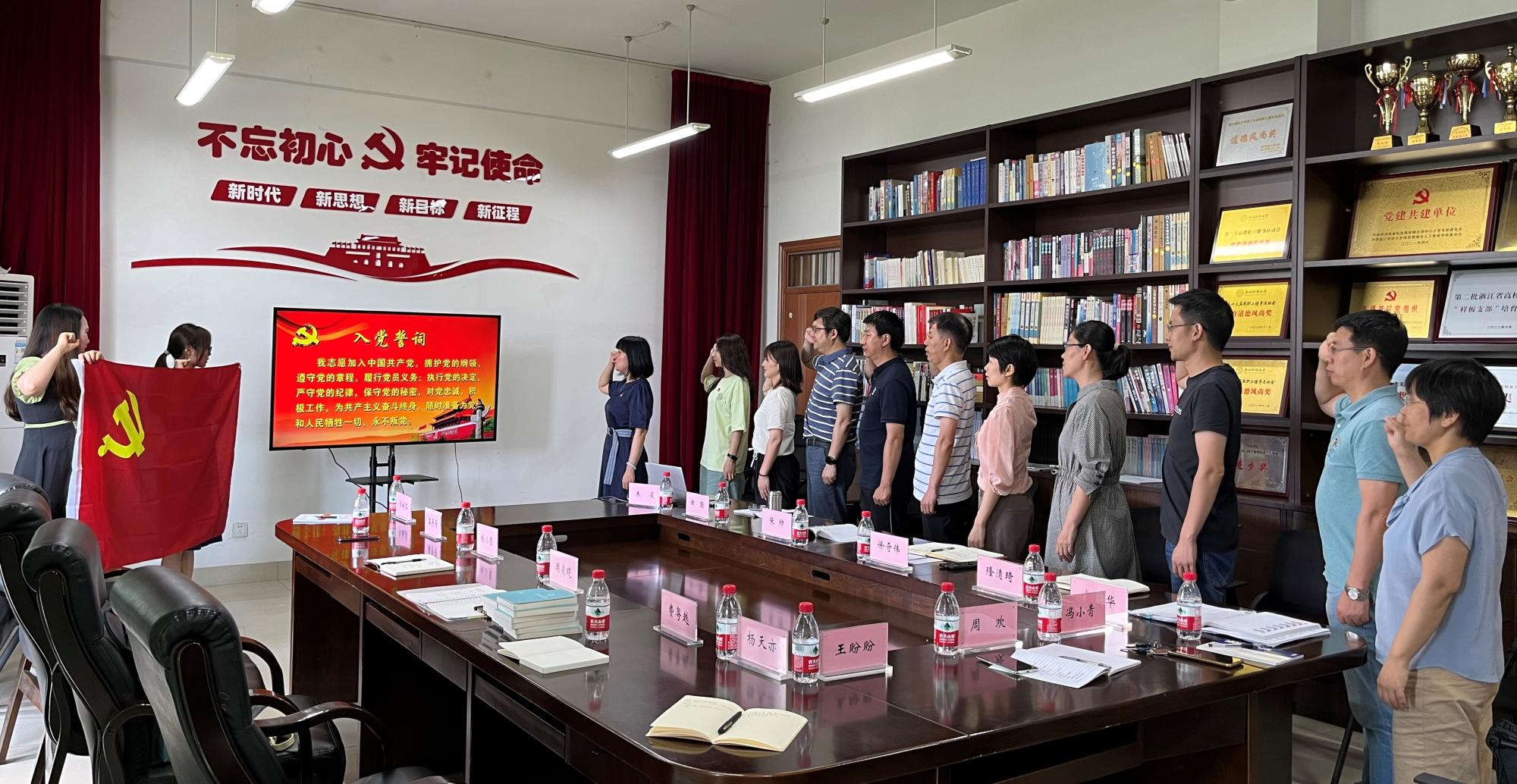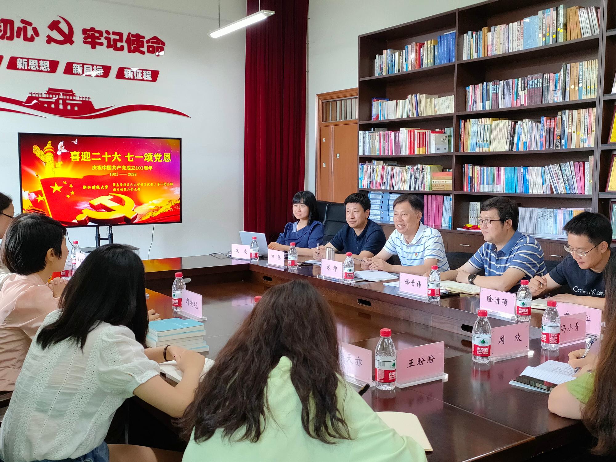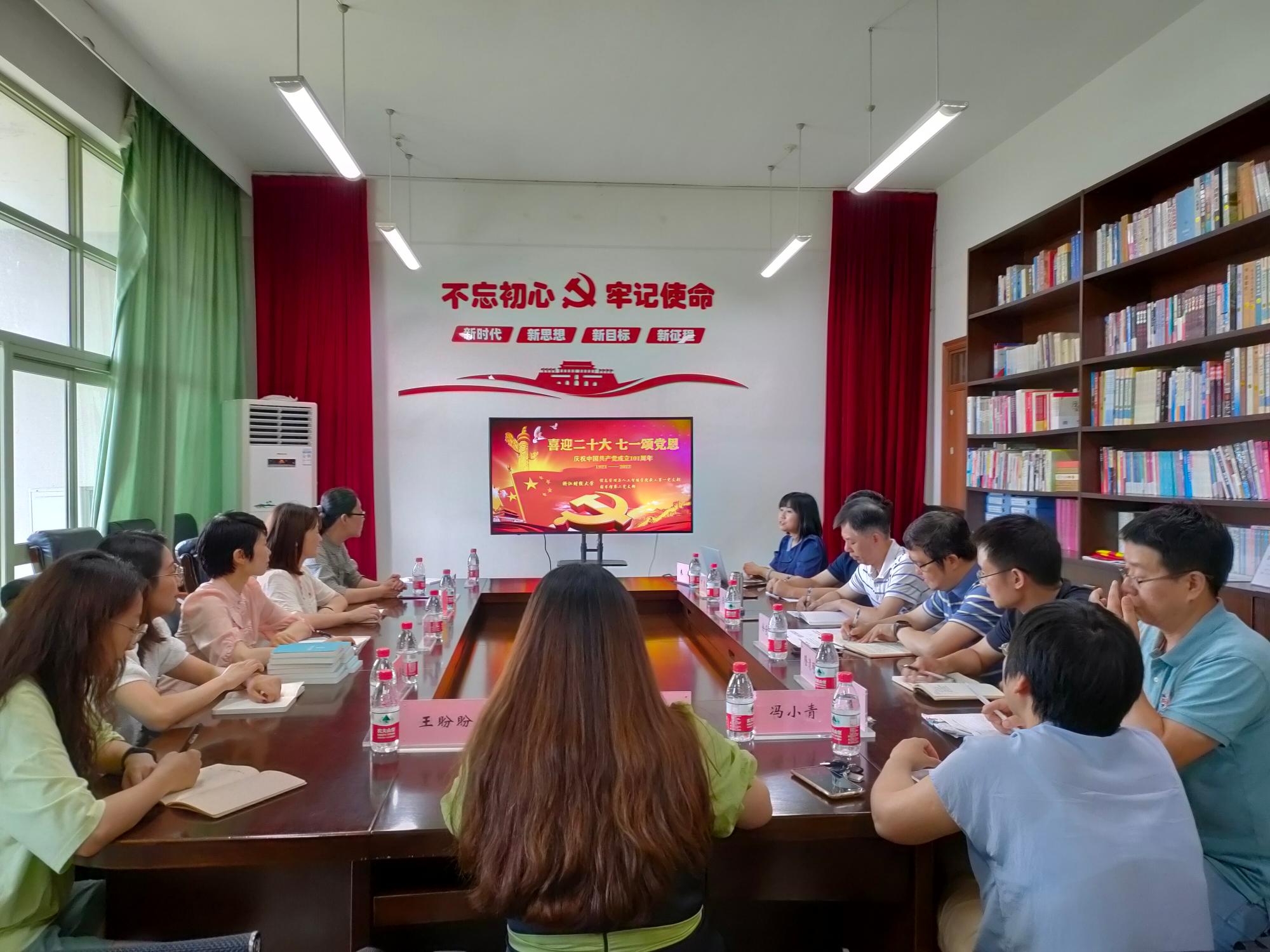 正值中国共产党成立101周年,伟德官网教工第一党支部与图书馆第二党支部联合学习宣传贯彻省第十五次党代会精神,集体过政治生日,重温入党誓词,喜迎二十大。