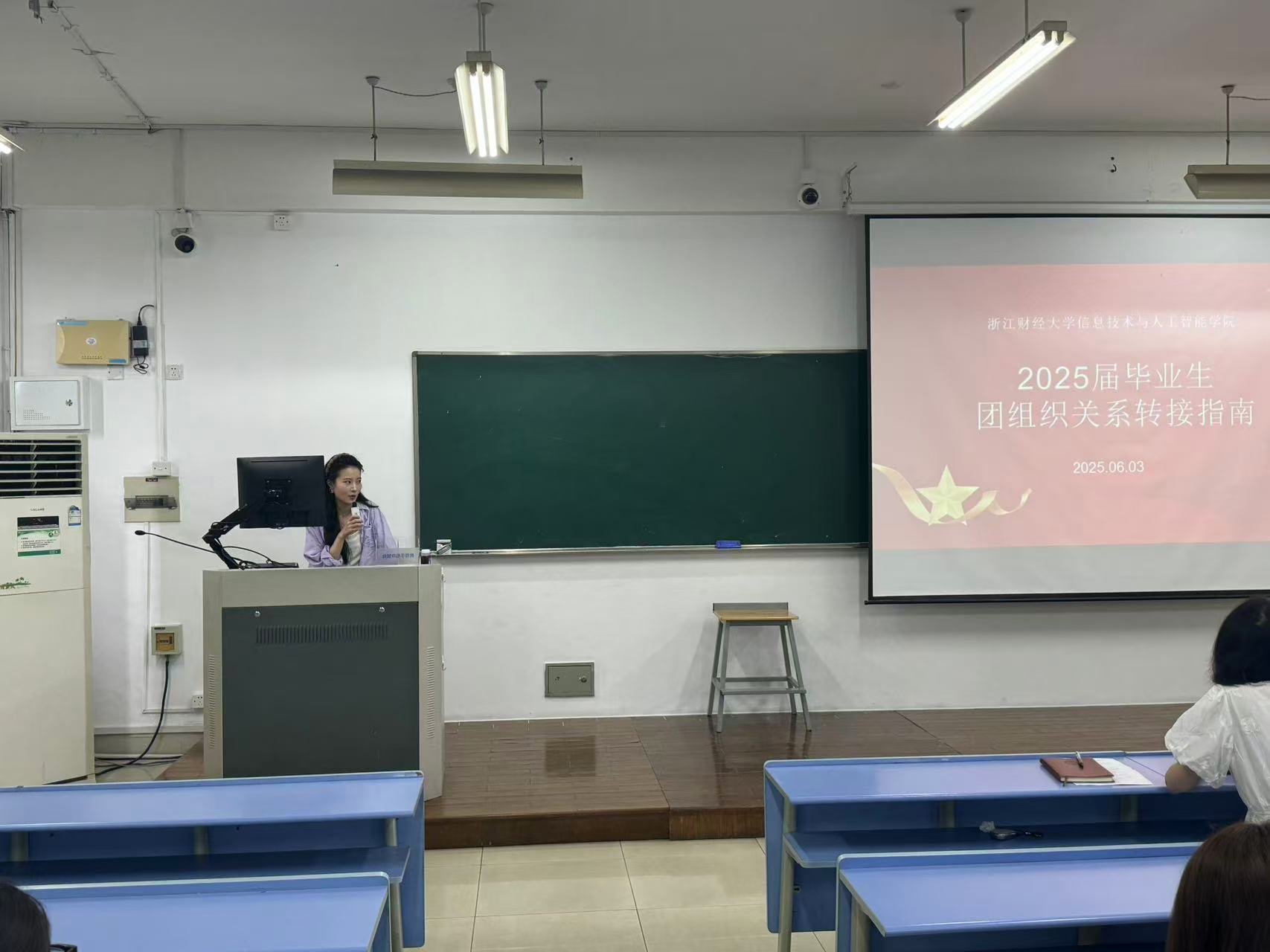 会议伊始,学院团委书记赵梦瑶率先为同学们详细介绍团组织关系转接流程。她从转接时间节点、所需材料、操作步骤等方面入手,用清晰易懂的语言为毕业生们答疑解惑,确保同学们对团组织关系转接有全面且深入的认识,顺利完成团组织关系过渡。