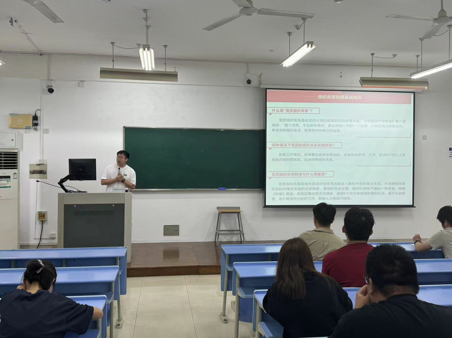 学院组织员徐军军在党组织关系转接介绍环节,细致讲解了党组织关系转接的相关政策与注意事项。他强调党组织关系转接是党员政治生活中的重要环节,叮嘱毕业生们务必高度重视,认真对待每一个流程,保障党组织关系顺利衔接。