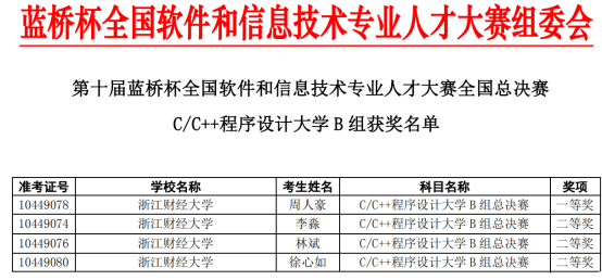 附第十届“蓝桥杯”全国软件和信息技术专业人才大赛我校获奖名单