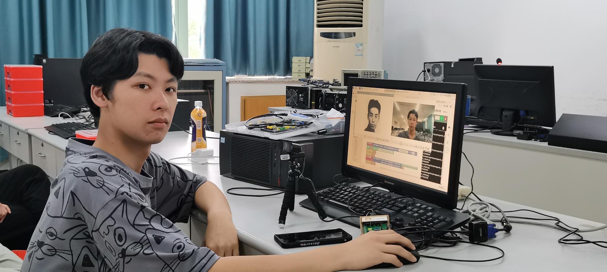 猜猜看你和哪一位历史人物的容貌最为相似?想学习如何用灯带“动感作画”吗?近日,在BV伟德官方网站信息管理与人工智能学院的实验室里,朱凌老师正在给学生们上《智能时代》通识教育课。由于授课对象是文理科学生兼有,同学们编程基础不一,有些甚至是零基础。针对这一情况,朱凌老师大胆尝试教学改革,制定创新教学方案,与古德微机器人共建课程,积极探索产学合作协同育人的人才培养新模式,在人工智能通识教育中将知识与技能融合,采用树莓派图形化编程技术设计了一系列人脸识别、语音识别、文字识别、机器翻译、物联网控制、智能硬件等虚拟仿真实验教学案例,帮助同学们更形象更真切地体验人工智能时代中信息物理空间融合的程序设计在我们工作、学习、生活中的强大应用。