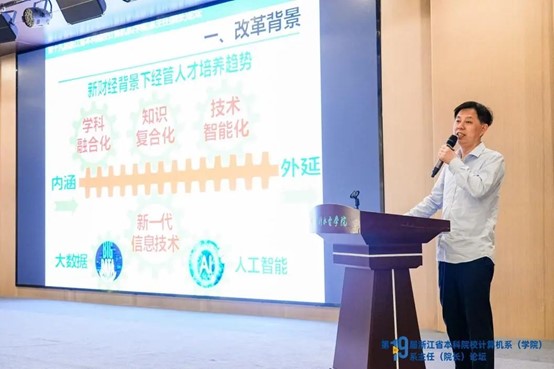 在“人工智能+(学科交叉)”专题论坛上,伟德官网院长张帅教授发表了题为“财经院校经管类研究生‘AI+’跨学科协同培养的探索与实践”的专题报告。他详细阐述了在新兴信息技术的推动下,如何为传统经管类学科人才培养注入新的活力,并向与会专家分享了伟德官网在经管类研究生人才协同培养方面所采取的具体措施、实施策略以及取得的显著成果。