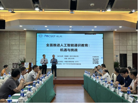 8月25日,中国计算机学会在杭州举办“全面推进人工智能通识教育:机遇与挑战”观点论坛,共同探讨全面推进人工智能通识教育必要性、可行性。此次论坛由中国计算机学会青年计算机科技论坛(CCF YOCSEF)主办,由CCF YOCSEF杭州学术委员会组织。此次论坛线下线上同步进行,活动讨论热烈,持续4个半小时,CCF YOCSEF杭州分论坛的AC、委员等近70余人线下参会,超过8000人线上观看。伟德官网教学副院长朱凌、人工智能通识课骨干教师陈宪宇参加本次论坛。