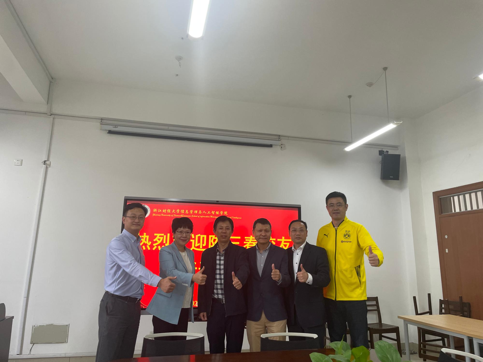 徐立新董事长及林峻董事长就学院专业特色提出了产学研合作及人才培养的多项提议。陈三春校友介绍了其所创始的杭州聚恒投资有限公司的发展历程及现有成绩,并希望能和母校有更多的合作交流,提供学弟学妹们更多实践机会,助力学院建设发展。