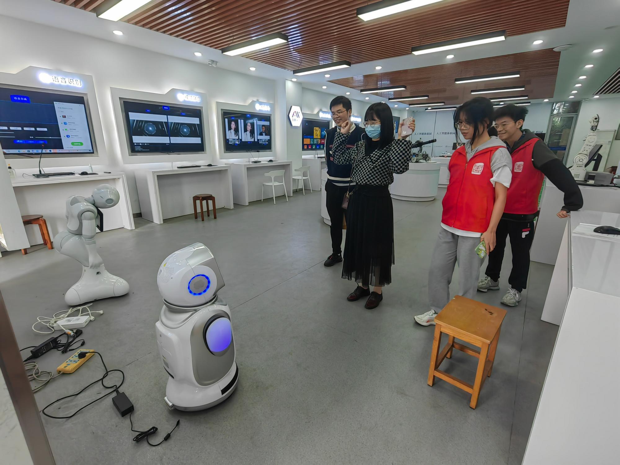 在人工智能体验园,“‘信’聚初心,‘智’创未来系列活动之‘AI+力‘人工智能创新成果体验”吸引了许多校友前来。在志愿者的引导下,返校的校友们在这里体验VR,看会说会跳和会在赛道上奔跑的机器人。母校变化如此之大,科技发展如此之快,让他们感受到信息技术和人工智能的强大活力,也为伟德官网的专业发展感到无比自豪。