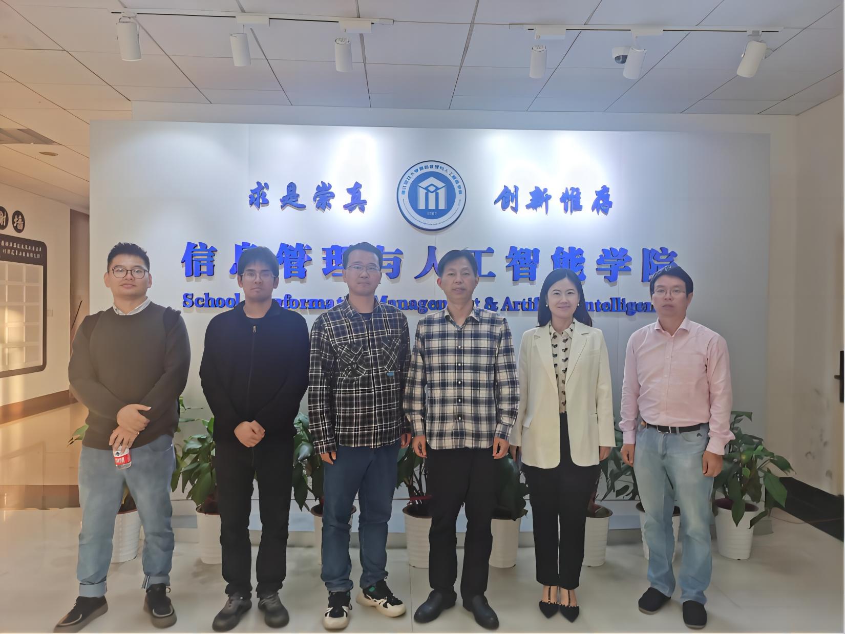 2022年11月10日下午,同花顺(高校、政府、上市公司等)事业部经理李振科、高校事业部运营总监陈城、高校事业部业务经理臧洁和高校事业部大客户经理吴思鹏一行四人来访交流,学院院长张帅、副院长隆清琦、实验中心主任章华热情接待了来访客人。