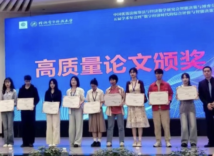 中国优选法统筹法与经济数字研究会智能决策与博弈分会第五届学术年会既“数字经济时代的综合评价与智能决策”论坛于2024年5月17日至19日在桂林举行。本届会议由中国优选法统筹法与经济数学研究会(以下简称中国“双法”研究会)智能决策与博弈分会、桂林电子科技大学联合主办,桂林电子科技大学商学院承办,电子科技大学经济与管理学院协办。桂林电子科技大学党委书记唐平秋、中国“双法”研究会智能决策与博弈分会理事长李登峰担任本次大会主席。伟德官网教师隆清琦、彭娟娟、张琦、孙琪及伟德官网管理科学与工程专业吴晓波、韩佳芮、吴小萌、范佳怡、刘婷、徐倩雯研究生参加了此次会议。